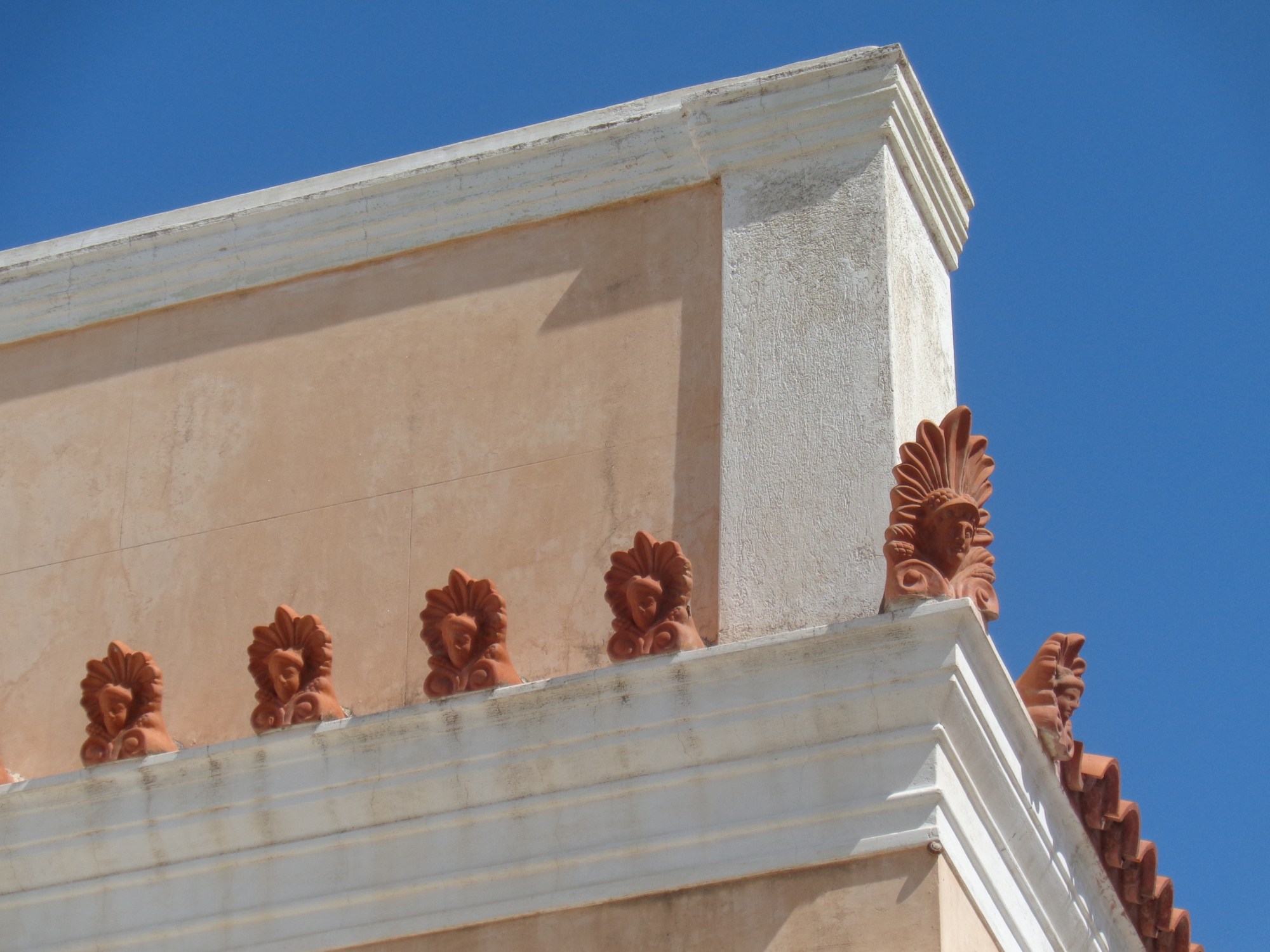 Les toits des maisons grecques sont encore quelquefois ornés d’antéfixes et d’acrotères, depuis l’Antiquité ce décor est toujours en vogue….