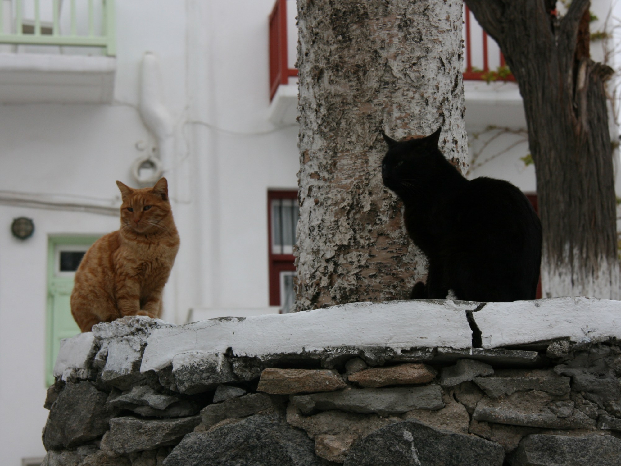 οι γάτες μένουν κάτω από το μπαλκόνι, les chats restent au-dessous du balcon.