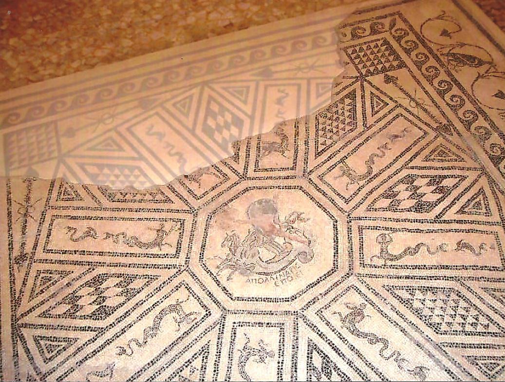 Photo: Mosaïque, Kato Zakros, Crète. (c) tous droits réservés à GP.