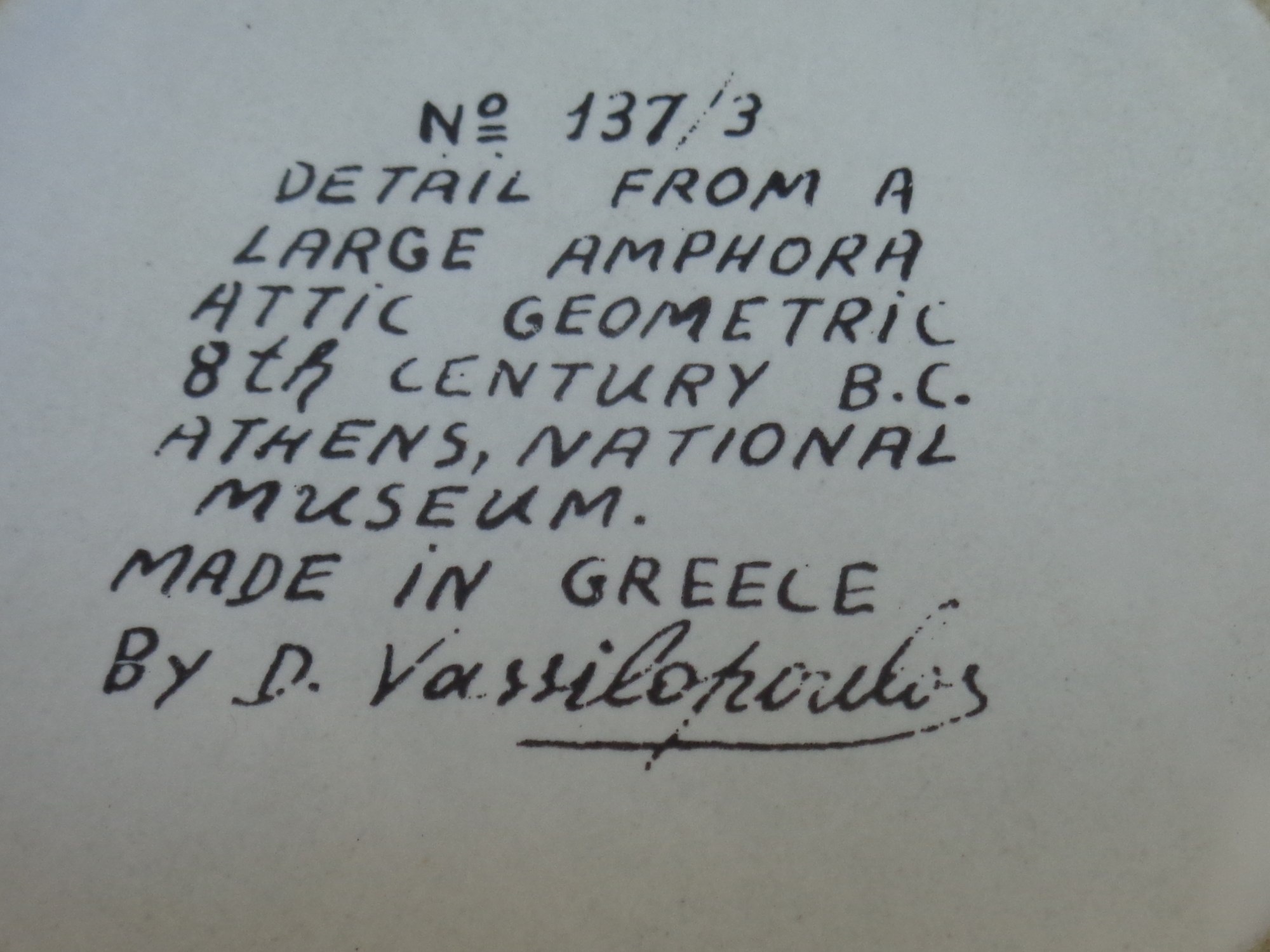 Vous a-t-on déjà donné un objet si laid que, à moins de vous l’offrir, on était certain que personne n’en voudrait ? C’est l’idée saugrenue qui a germé dans l’esprit de mon fils de retour du bric à brac Emmaüs, quand il m’a gentiment offert un tout petit service à café miniature, peint à la main -χειροποίητο- en Grèce sans doute par un apprenti dessinateur qui n’avait pas la vocation et décoré de tous petits personnages rappelant vaguement les hommes insectes des vases géométriques … Tout cloche dans ce service : Les tasses sont trop petites pour y boire dedans, trop grandes pour en faire une dînette de petite-fille, les anses minuscules interdisent qu’on les tienne, le décor est hideux et tracé à la va comme je te pousse, le trait est épais et les couleurs brunâtres, les petits hommes insectes ont l’air de ne pas savoir ce qu’ils font là, il n’y a plus que 5 tasses… et j’ai envie de dire : « Heureusement ! » Qui aurait pu acheter ce « truc-là » ? Personne ! Mais on peut toujours l’offrir à un prof de grec qui n’aura pas le coeur de mettre à la poubelle des tasses à café χειροποίητα en Grèce…