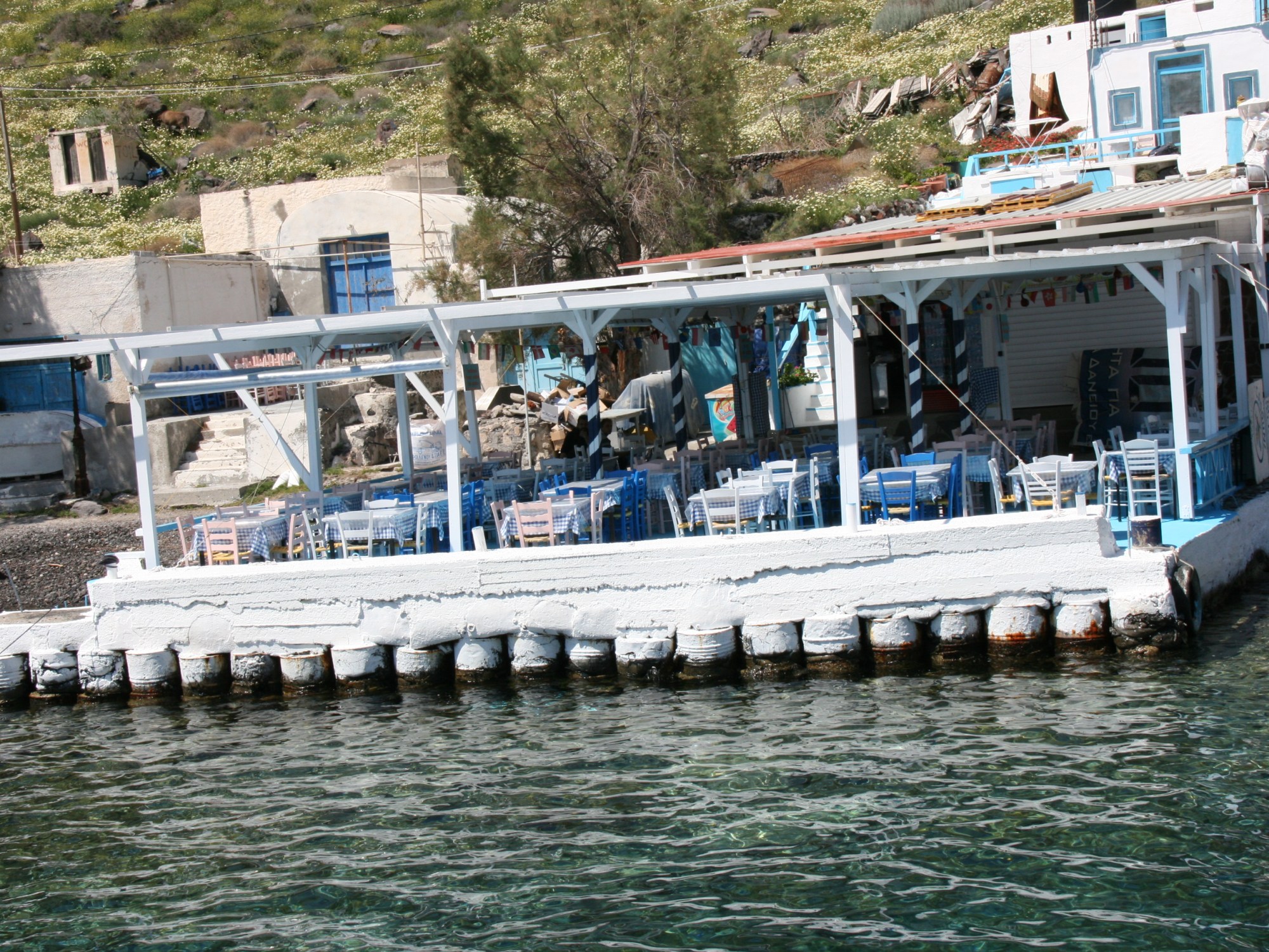 Photo: taverne sur l’eau à Thérasia. (c) tous droits réservés à GP.
