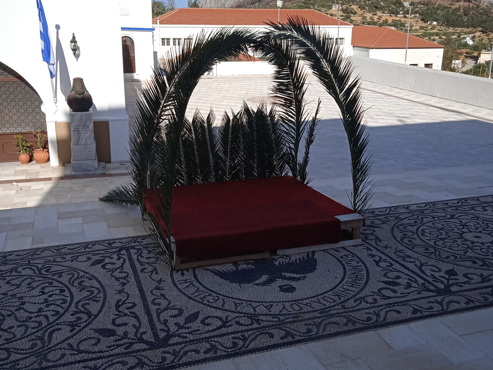 Photo: Palmes sur le parvis de l’église d’Apéri. (c) tous droits réservés à GP.