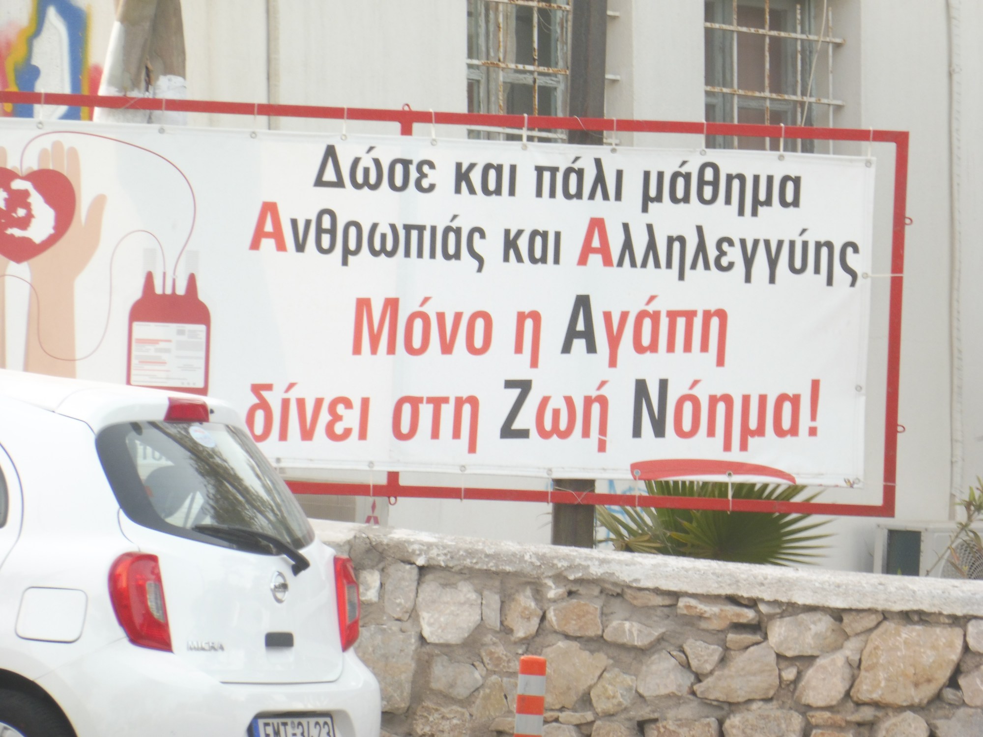 Banderole aperçue dans un petit village à l’occasion de la campagne pour le don du sang.