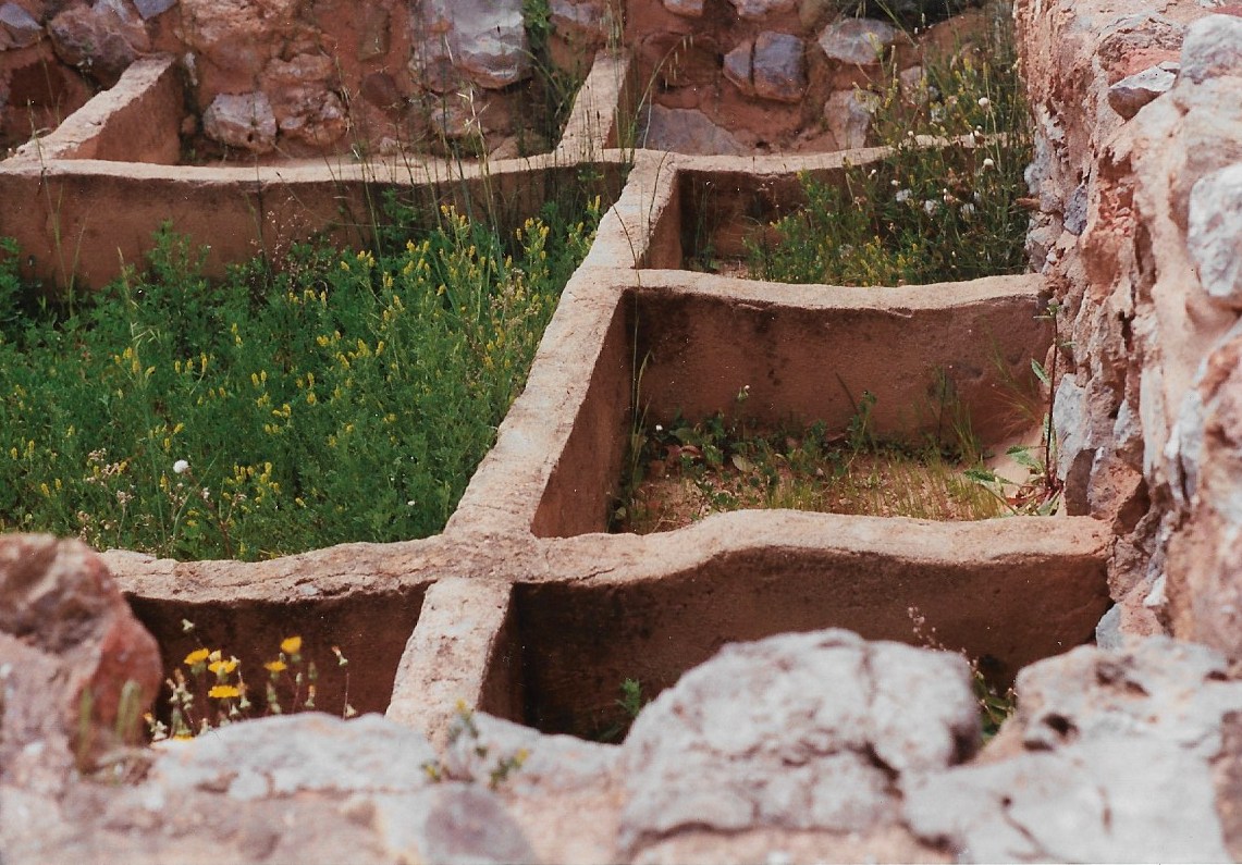 A Zakros au sud-est de la Crète, on peut encore voir des casiers de terre-cuite bâtis à même le sol, qui servaient à entreposer en lieu sûr des richesses à l’intérieur de murs de pierres épais. Certains font un bon mètre carré, d’autres sont plus petits sur une profondeur d’environ 40 cms. Une trappe en bois devait faire office de couvercle et assurer la sécurité du dépôt. La division en carrés de différentes grandeurs suggère une répartition individuelle… suivant le nombre et le volume des richesses de chacun. On se trouve devant la très ancienne salle des coffres d’une très ancienne banque, puisque le site de Zakros date de l’époque minoenne …