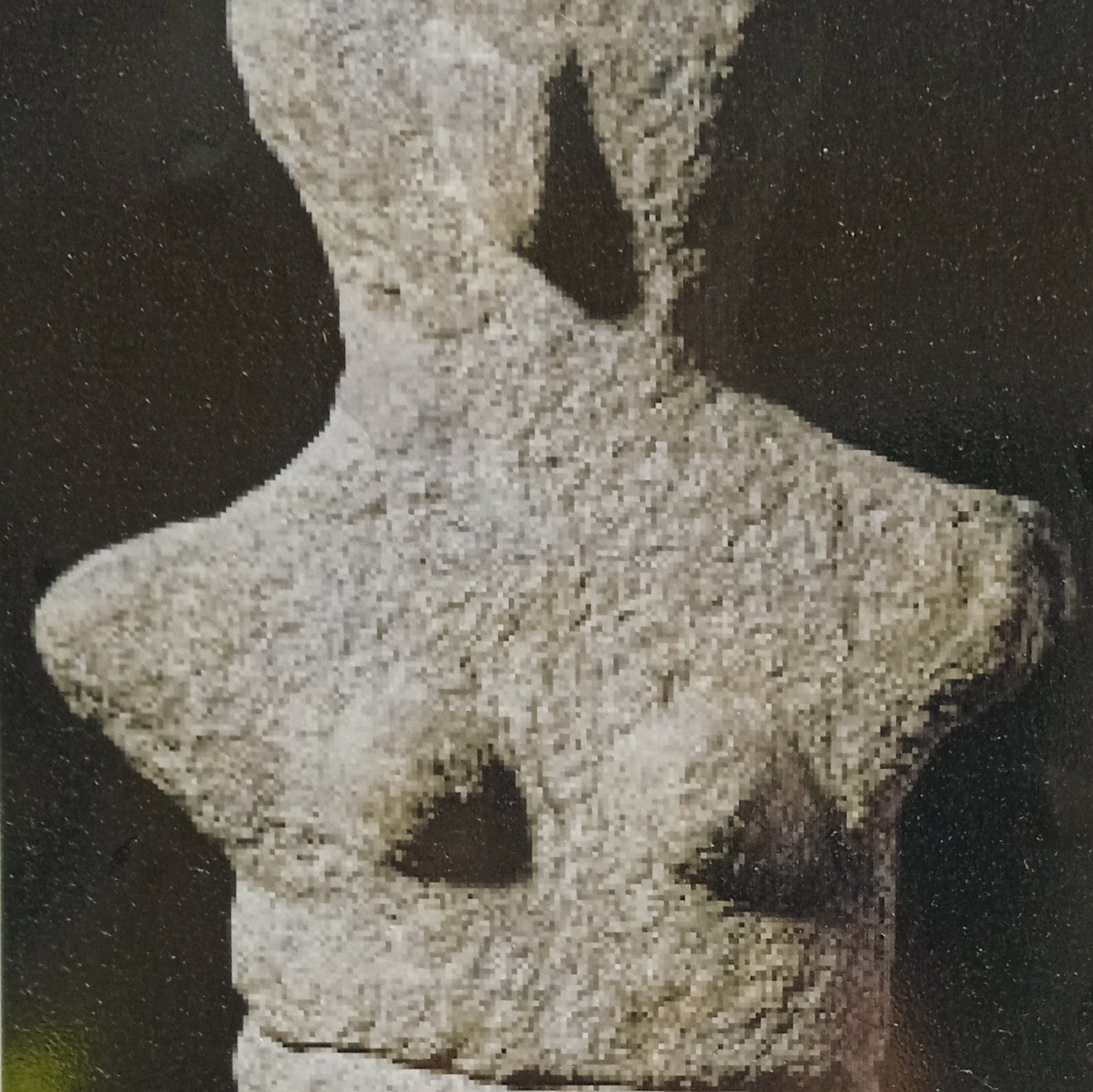 La Dame de Karpathos a été retrouvée en deux morceaux sur l’île éponyme dans le village de Ménétès. Elle a perdu ses bras, ses jambes et, cependant, cette petite statue représentant une silhouette féminine ressemble beaucoup aux idoles cycladiques … Quoique … Si on regarde de près, on voit qu’elle n’est ni en marbre blanc ni en marbre rose, mais en pierre de couleur grise… Elle n’a pas les bras le long du corps, comme la position de ses épaules le suggère… Elle n’a pas la face en lentille, mais elle présente un visage large et triangulaire. Elle n’a pas un cou long et cylindrique, le sien est large et ramassé. Elle n’a pas un nez en lame de couteau mais plutôt un bec crochu en saillie. Son corps n’est pas droit et comme taillé à la hache, mais elle a la taille marquée et même l’amorce d’un léger déhanchement. Que dire de plus ? Ses seins ne sont ni plats ni encore moins carrés, ni marqués par des incisions. Ils sont en pois et correctement positionnés sur le torse. Qu’est-ce qui pourrait en faire une déesse de la fertilité, comme ses homologues du V° siècle en mer Egée? Les incisions sexuées qui marquent son bas-ventre ? On a l’impression qu’elle est beaucoup plus récente que les autres idoles, car moins monolithique, moins sévère, moins rigide … et finalement c’est le contraire, car elle a plus de 6000 ans ! Cette petite statue n’en finit pas de nous étonner : C’est la plus ancienne statue du British Museum… Souhaitons-lui de retrouver un jour son village coloré de Ménétès ou un futur musée à Pighadia, car elle figure en bonne place sur la pétition qui demande la restitution des œuvres grecques à la mère patrie !