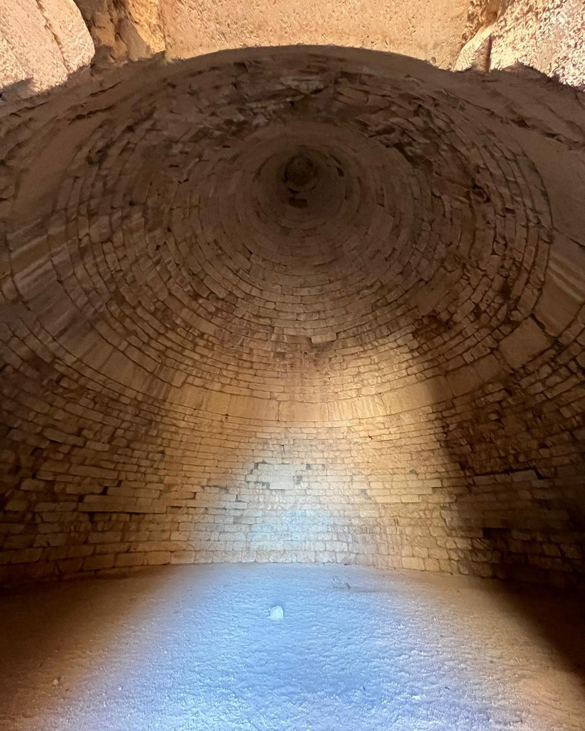 … d’Agamemnon, on est sidéré par les dimensions de l’édifice, scotché par l’empilement parfait des pierres, ébahi par l’épaisseur des murs et, malgré la clarté qui entre par la grande porte, un peu inquiet en passant sous l’énorme linteau de 12 tonnes et, pour tout dire, on lutte contre une sensation d’étouffement, de danger, de malaise devant ce lieu chargé d’histoires et de malheurs … Je ne dirais pas que c’est beau, c’est grandiose mais n’oublions pas que c’est un tombeau… Bref, ce n’est pas là qu’on passerait ses vacances !